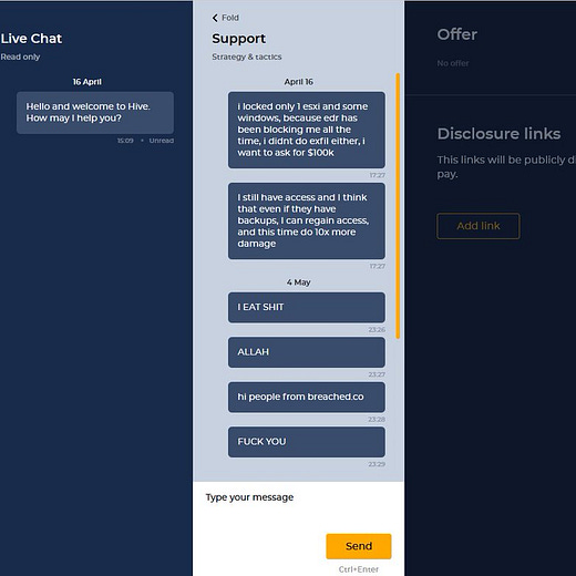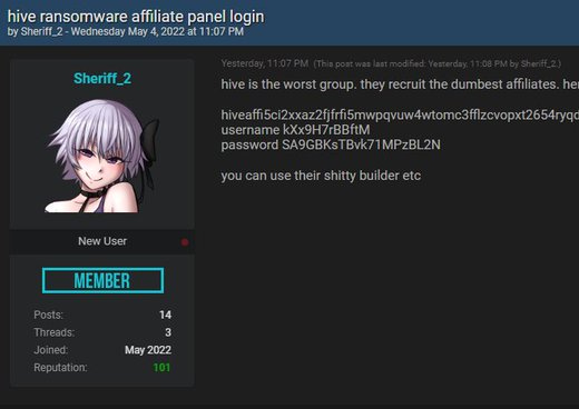 Hive ransomware leak: An unidentified individual leaked on Thursday credentials for an account on the Hive ransomware-as-a-service. The credentials were leaked on a new cybercrime forum named Breached, launched to replace the defunct RAID Forums. The individual appears to be a former HIVE affiliate who shared the credentials on the forum after not receiving payments for four attacks they conducted on behalf of the HIVE gang. The HIVE RaaS account was eventually suspended and stopped working a few hours after the leak, threat intel analysts reported.